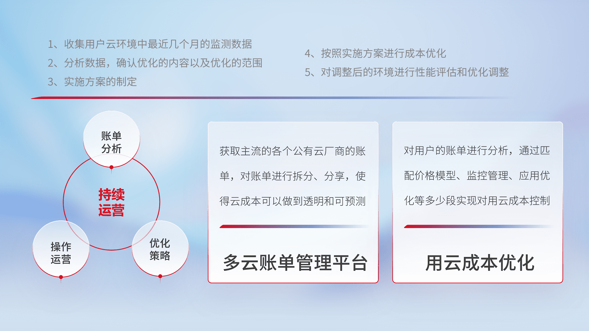 监控业务系统资源开销,,对资源的消耗精确计量,,实现费用的透明化管理,,,,不断提升资源使用率,,,,调整资源购买方式,,,降低资源费用成本,,,,用云成本可预测、、、用云费用可优化,,,云资源配额有据可依。。